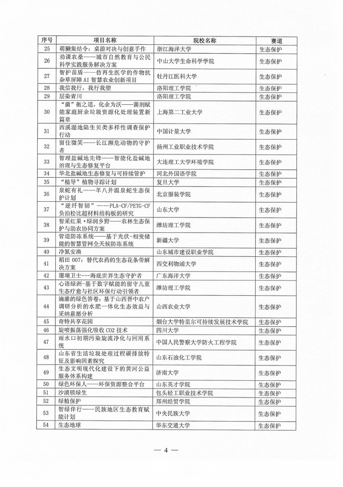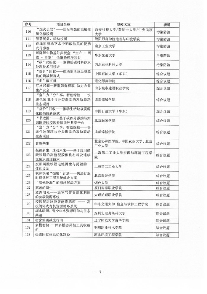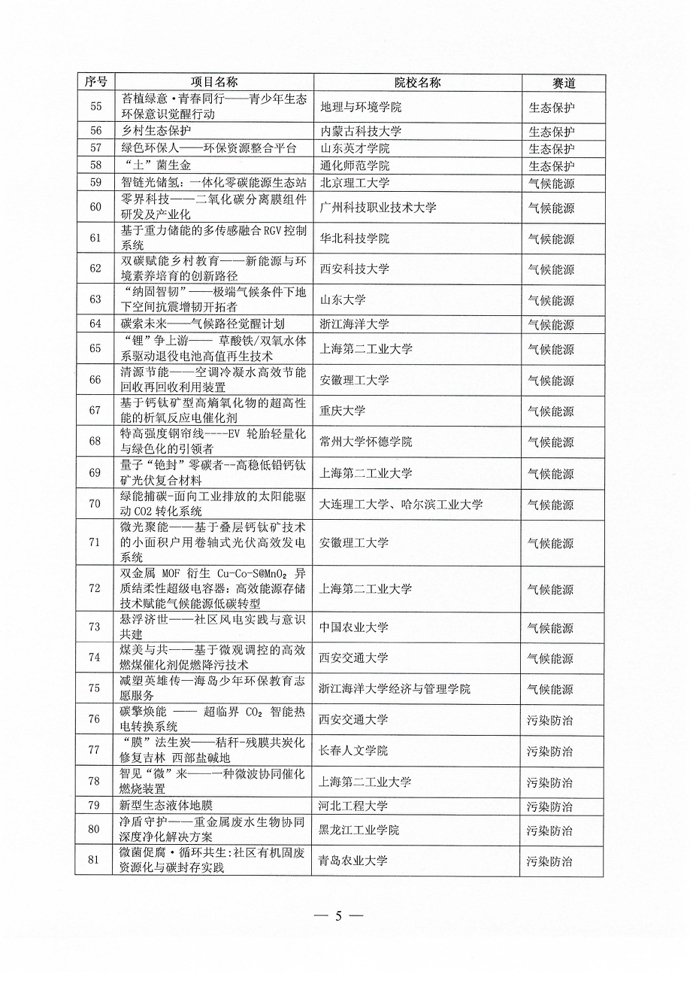 关于大学生环保创新创业大赛合规参赛项目名单的公示