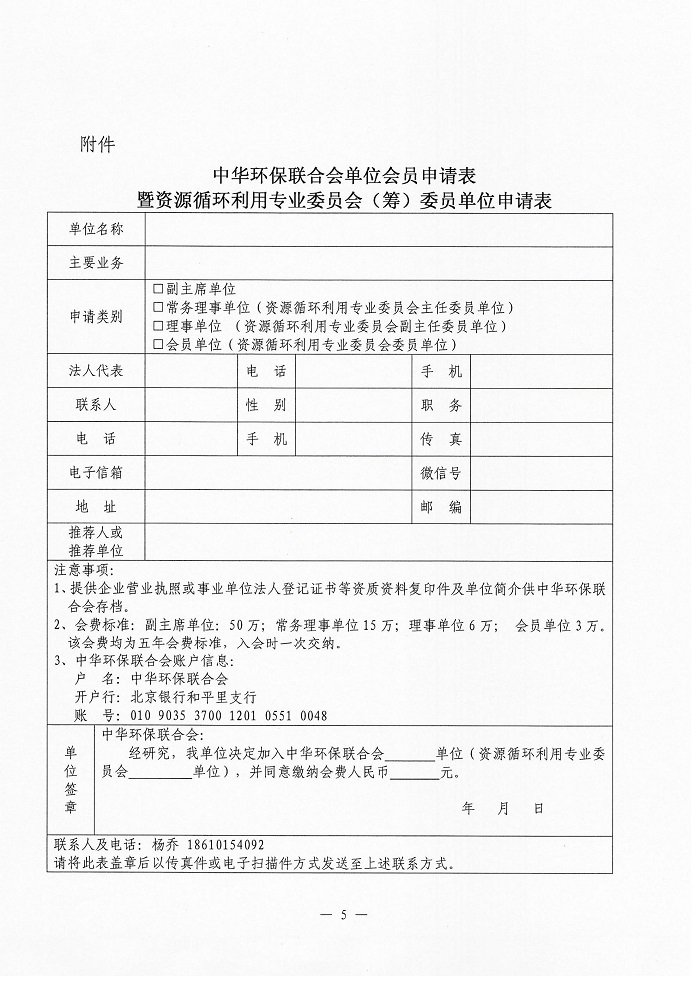 关于邀请加人中华环保联合会资源循环利用专业委员会委员单位(筹)的函