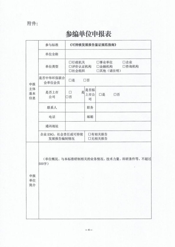 关于征集《可持续发展报告鉴证规范指南》行业标准参编单位的通知