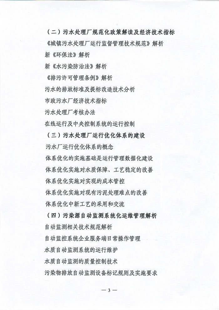 关于举办"污(废)水处理、污染源自动监测"运维管理人员培训班的通知