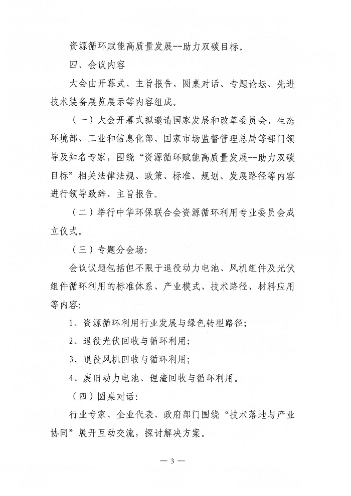关于中华环保联合会资源循环利用专业委员会成立大会暨“新三样固废”综合利用先进技术与产业模式研讨会的通知(第一轮)