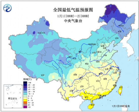 1月1日08时至2日08时,内蒙古东北部、黑龙江、青海东南部等地有小到中雪或阵雪。内蒙古东部、东北地区等地有4~5级风。南海西南部有6~8级的风。