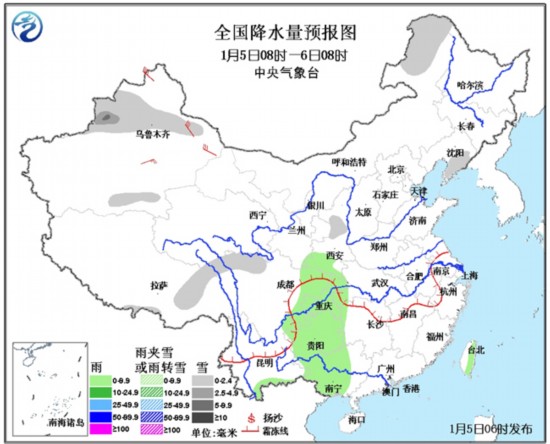 另外,今天白天到夜间,内蒙古东北部也将出现小到中雪或阵雪天气;西南地区东部、广西西部等地有小雨或阵雨天气。