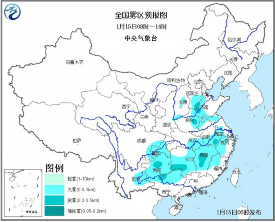 在西南地区东部及江南等地,大雾天气仍旧持续。预计今天早晨到上午,四川盆地东部、重庆中南部、贵州、云南东部、广西北部、湖南中南部、江西、湖北东部、安徽南部和北部、江苏西南部和北部、浙江西部、福建西北部、河南东部、山东西部、河北中南部、山西中部和南部等地有大雾;其中,河北南部、山东西北部、河南东部、安徽南部、江西中南部、湖南南部、广西北部、贵州中部等地的部分地区有能见度不足500米的浓雾。预计本周末之前,华北南部、黄淮、长江中下游及四川盆地等地的部分地区将持续被雾或霾天气困扰。