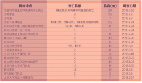 作者2013年在北京城区所做雪松死亡调查记录
