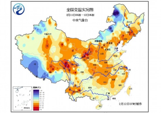 自2月7日,南方地区经历了一次大范围雨雪降温天气过程;11日起,雨雪天气明显减弱,南方大部基本无降水。雨雪暂歇的一个最显著的影响是气温开始顺势爬升。昨日下午开始,南方地区的气温开始逐步回升。与昨日凌晨南方大部气温还在继续走下坡路的状况相比,今晨5时,南方集体回温,几乎“换了人间”。