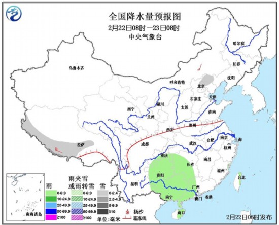 降水方面,今天白天到夜间,我国大部降水天气仍然较弱。除西藏西南部等地有小到中雪、局部有大雪,以及贵州、广西、湖南西部、广东西部等地有小雨或阵雨以外,全国其他大部地区无明显降水。预计从23日开始,南方大部将出现一次明显的降雨过程,部分地区将出现大雨。