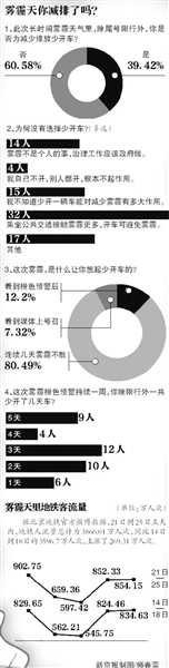 新京报讯截至昨日,此次京城重污染已持续7天。昨日,新京报记者向北京的102名私家车车主发起调查,近四成的车主在雾霾天里为减少排放而少开车。这其中,八成车主是因连续几天雾霾不散而减少开车。