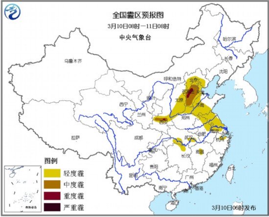 今天,仍受静稳天气形势控制的华北和黄淮北部等地有轻度到中度霾,河北中南部等地的部分地区有重度霾。11日下午受南下冷空气影响,上述地区北风增大,霾将自北向南减弱或消散。中央气象台提醒:公众请及时关注最新天气预报,出行及上班的朋友注意佩戴专业口罩加以防护。