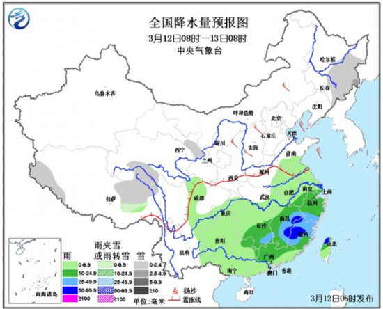 随着冷空气的抵达,11日夜间起,华北、江淮等地的霾已经出现明显减弱或消散。预计今天(12日)上午黄淮等地的霾也将减弱或消散。另外,在过去24小时里,江南等地的雨势渐强,江西中部、福建西北部等地降雨量有30~50毫米,局地55~69毫米;吉林东部的强降雪表现也比较抢眼,部分地区降下大雪。