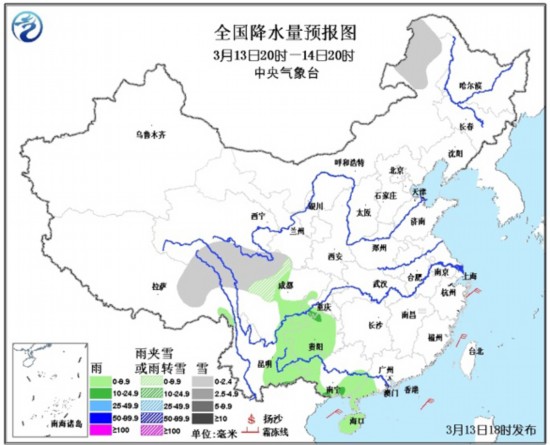 降水方面,未来24小时,全国范围内有降水出现的地方不多。主要在青海南部、西藏东北部、川西高原、内蒙古东北部等地可能出现小雪或雨夹雪;西南地区东部、云南东部、广西西部和南部、海南等地有小到中雨。