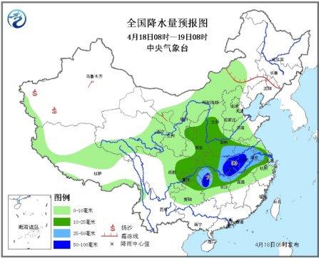 中新网4月18日电 据中央气象台消息,未来三天,西南地区东部、长江中下游地区有较强降雨过程,部分地区有大雨、局地暴雨(50~90毫米),上述部分地区并伴有雷暴大风、冰雹等强对流天气。