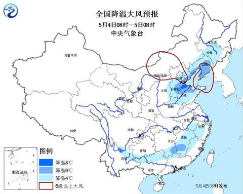 今天(4日)是五一节后的第一个工作日。受冷空气影响,内蒙古东部、东北大部、华北、黄淮大部将再次出现大范围降温,尤其是东北局地降温幅度超10℃,最高气温也普遍只有10℃左右。另外,南方降雨逐步向东向南推进,今明天,湖南、江西、福建、广东等地将陆续出现较强降雨,并且可能伴随短时强对流天气。