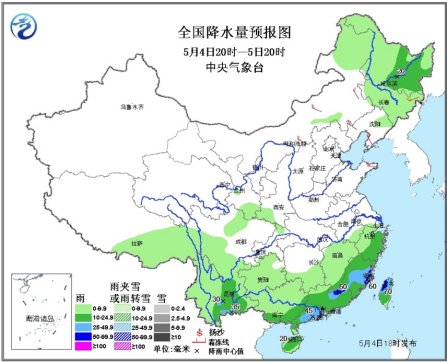 人民网北京5月5日电 (杨翼)受东北冷涡以及冷空气迅速南下影响,今天白天,我国中东部大部分地区的气温出现明显下降,多地降温幅度超过8℃。预计明日,南方地区的降雨强度将较今日有所减弱。