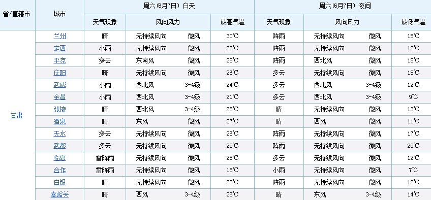人民网北京6月5日电(蒋琪)据中央气象台最新消息,高考第一天(6月7日)甘肃省以多云和晴天为主,5市有雨。高考第二天(6月8日)白天甘肃省武都有中雨,提醒考生和家长注意出行。