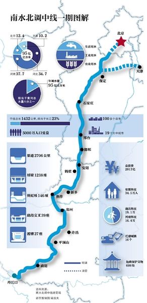 根据当时规划,中线总干渠起点为丹江口水库,终点为北京团城湖,全长1276公里,预计耗资920亿元。