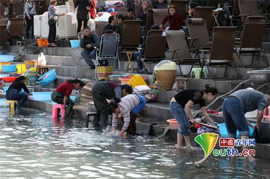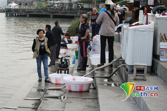 三峡工程175米蓄水后,重庆万州不少市民趁着江水上涨后带来的便利,纷纷带着脏衣物、床单、被褥等到长江边清洗,洗衣者成群结队有时扎堆上百人,更有精明的生意人搬来洗衣机和洗涤用具在此长期出租。洗衣机的污水排放口直接插入长江,肥皂泡沫、污渍、污水等混注长江,给库区长江水质带来污染,已成为一道不雅的“风景”。