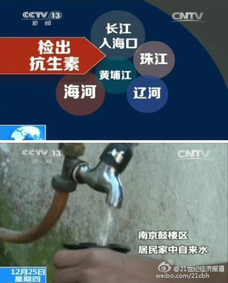 东方网12月25日消息:最近,央视记者联合水环境国家模拟重点实验室、北京师范大学的水科院的研究人员对我国部分地表水取样检测时发现:抗生素含量惊人!甚至在南京居民家中的自来水也有抗生素检出。记者在暗访中发现,“山东鲁抗医药”大量偷排抗生素污水,浓度超自然水体10000倍!
