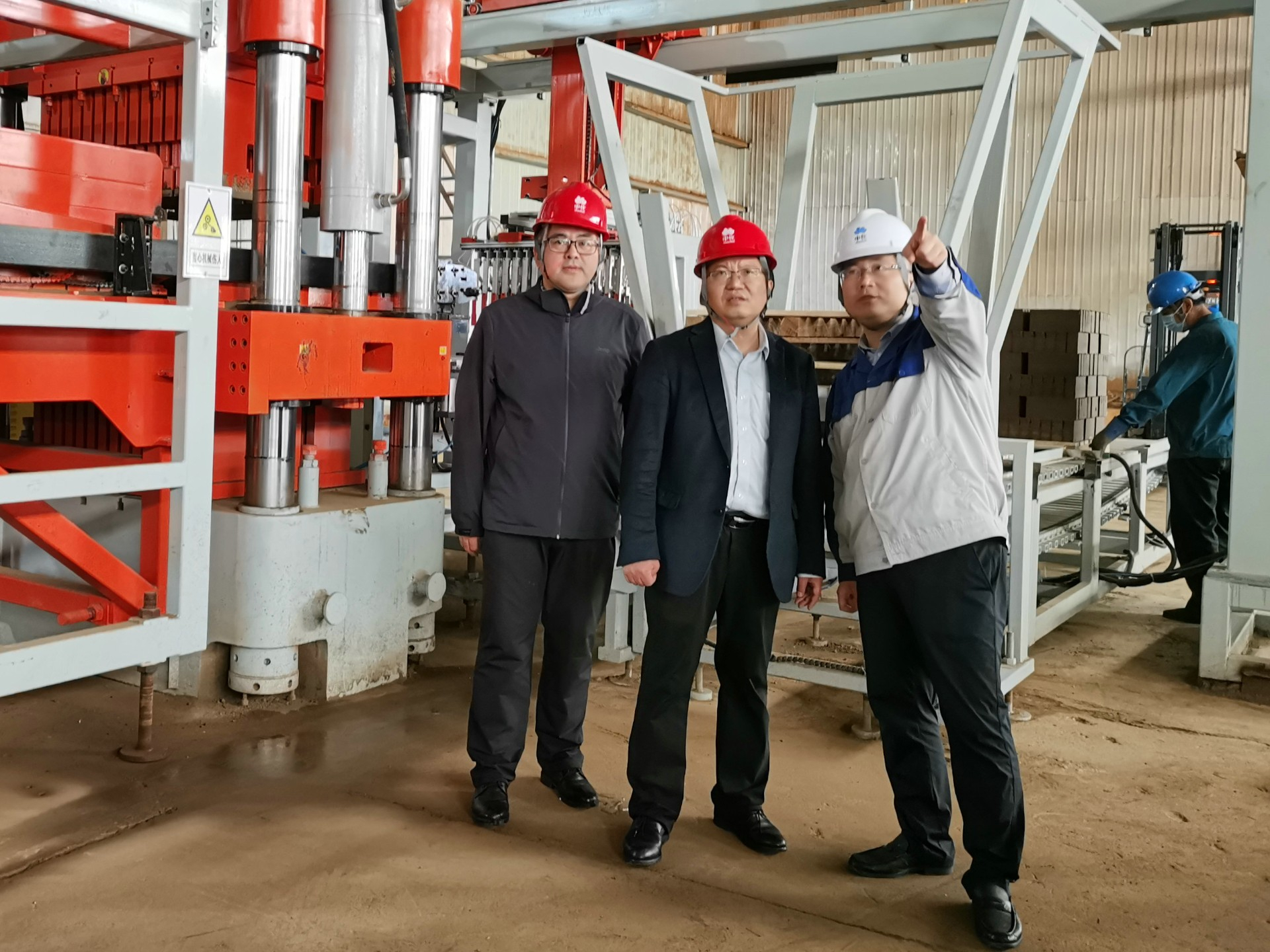 济南市生态环境部门工作人员现场了解裕兴化工钛石膏制砖项目进展。董若义摄