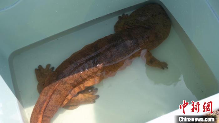 图为江西省庐山市相关部门合力救助并放生的野生“娃娃鱼”。张晓茜 摄