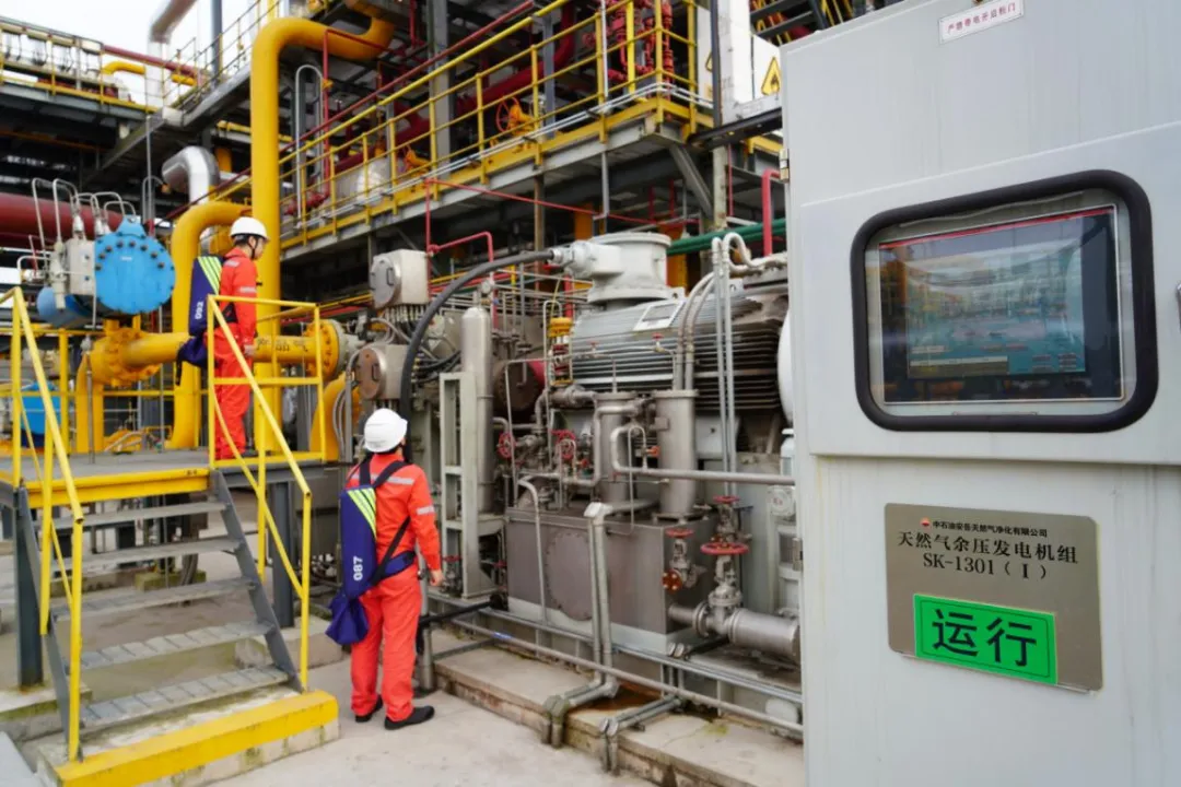 安岳净化公司副经理、新能源发电工程项目部经理赖兵介绍:“第一台天然气余压发电机组于今年1月9日投运,是西南油气田公司天然气余压发电示范工程首套装置,至今已连续平稳运行超120天。第二套装置于4月28日投产试运行。两套装置已累计发电超过100万度,全部并入公司内部电网,供净化装置运行生产使用。”