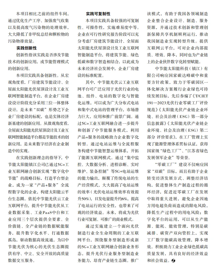 中节能太阳能科技(镇江)有限公司“零碳工厂”建设研究成果