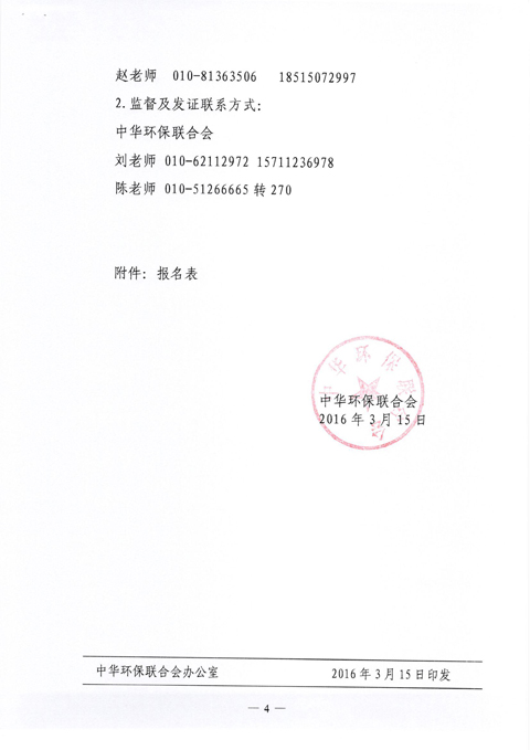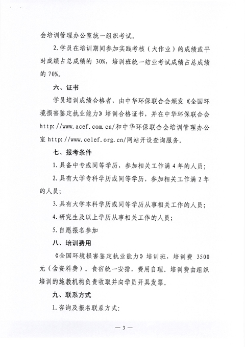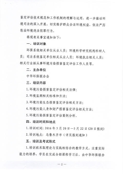 中华环保联合会关于举办《全国环境损害鉴定执业能力》2016年第二期岗位培训班的通知