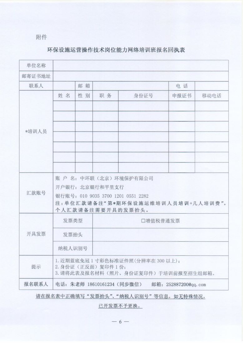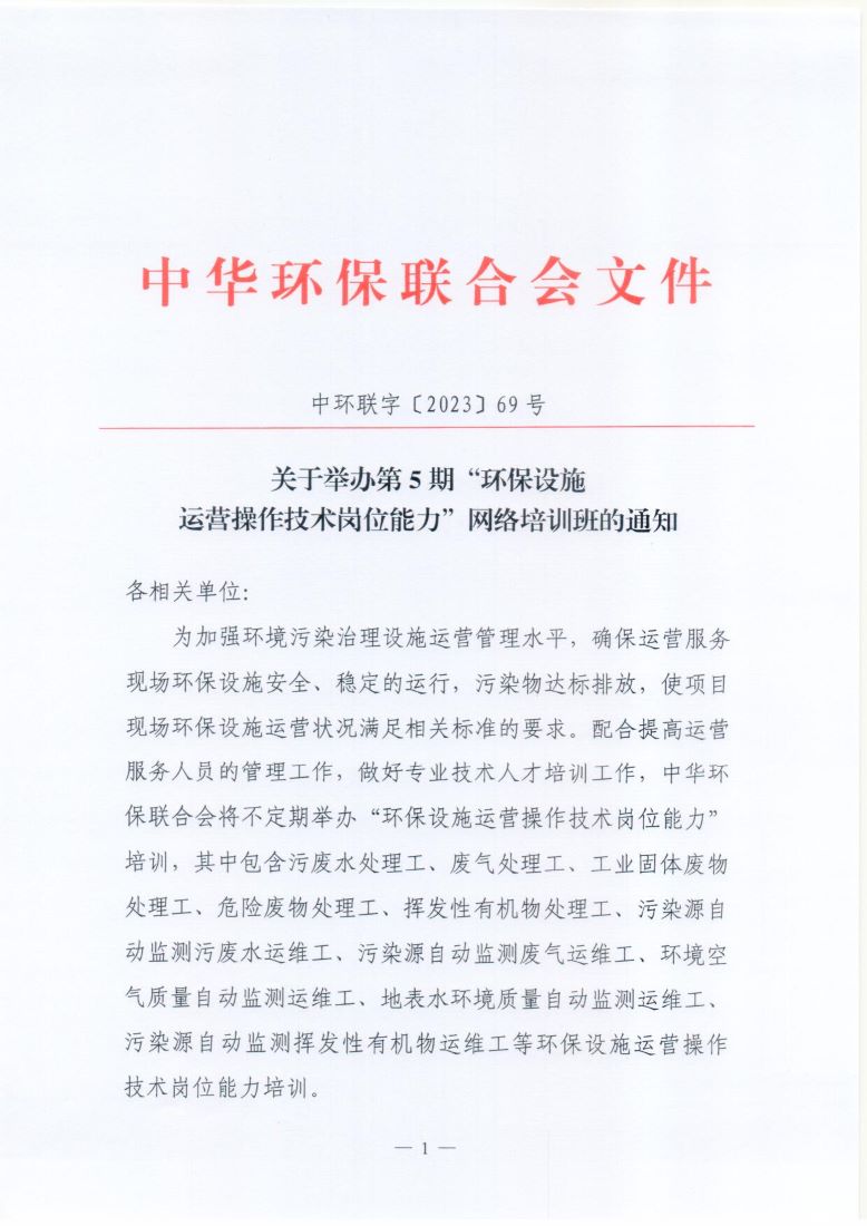 关于举办第5期“环保设施运营操作技术岗位能力”网络培训班的通知