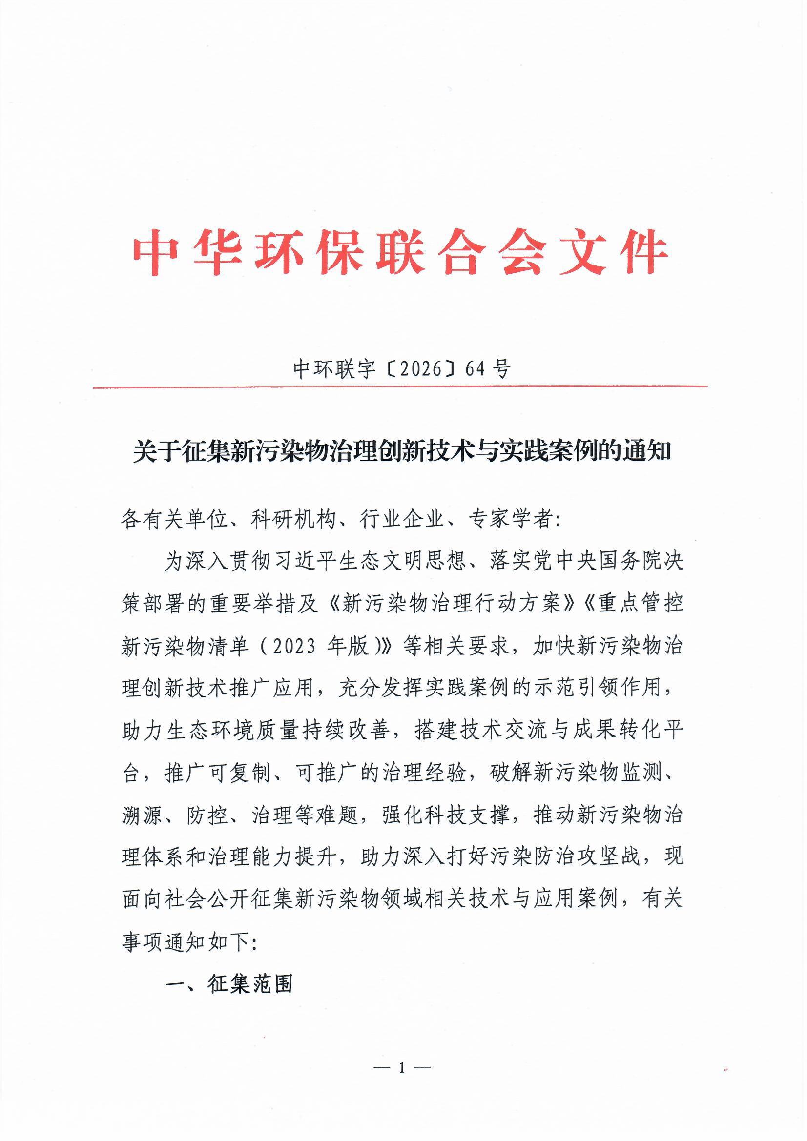 关于征集2026年(第一届)新污染物应