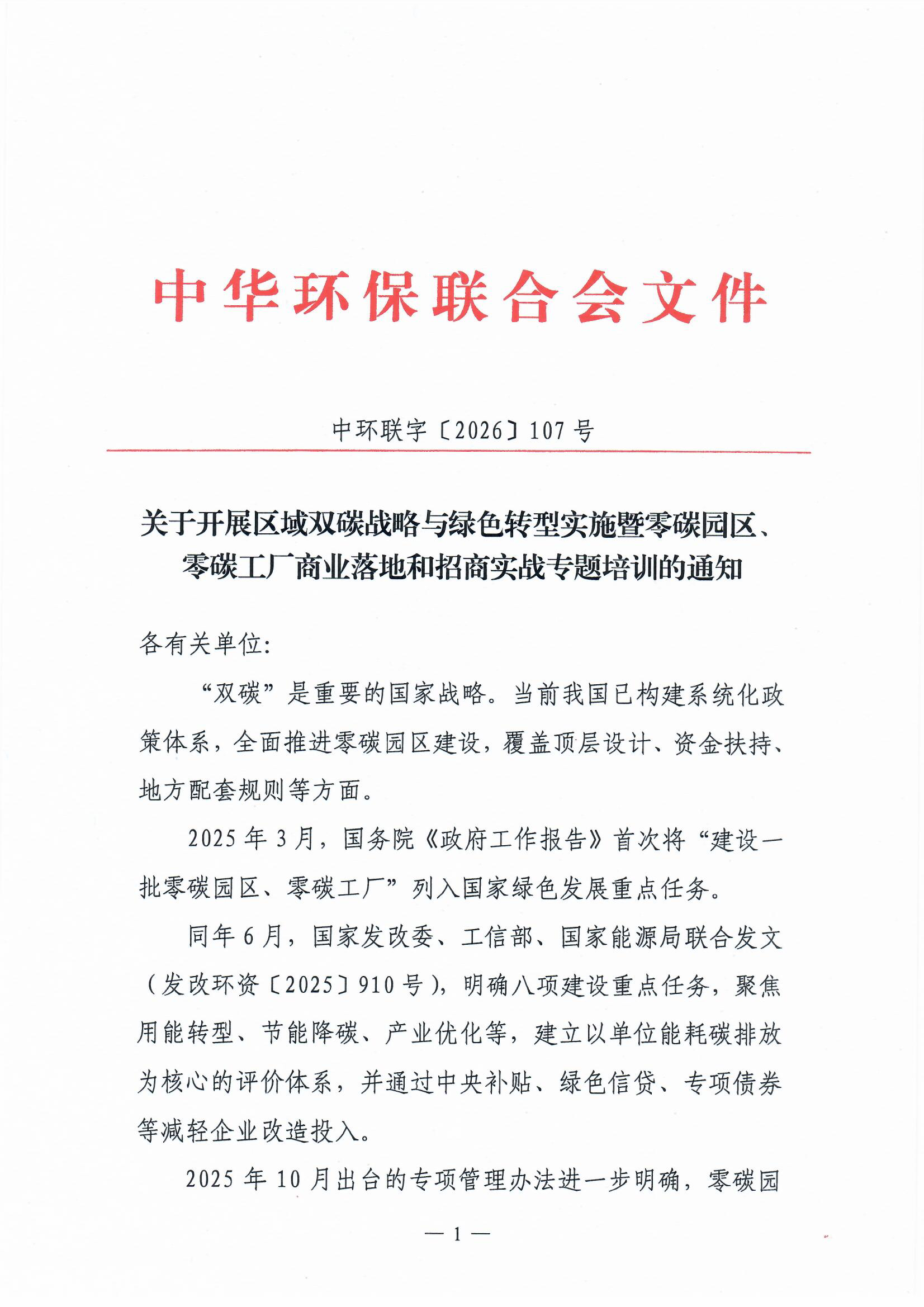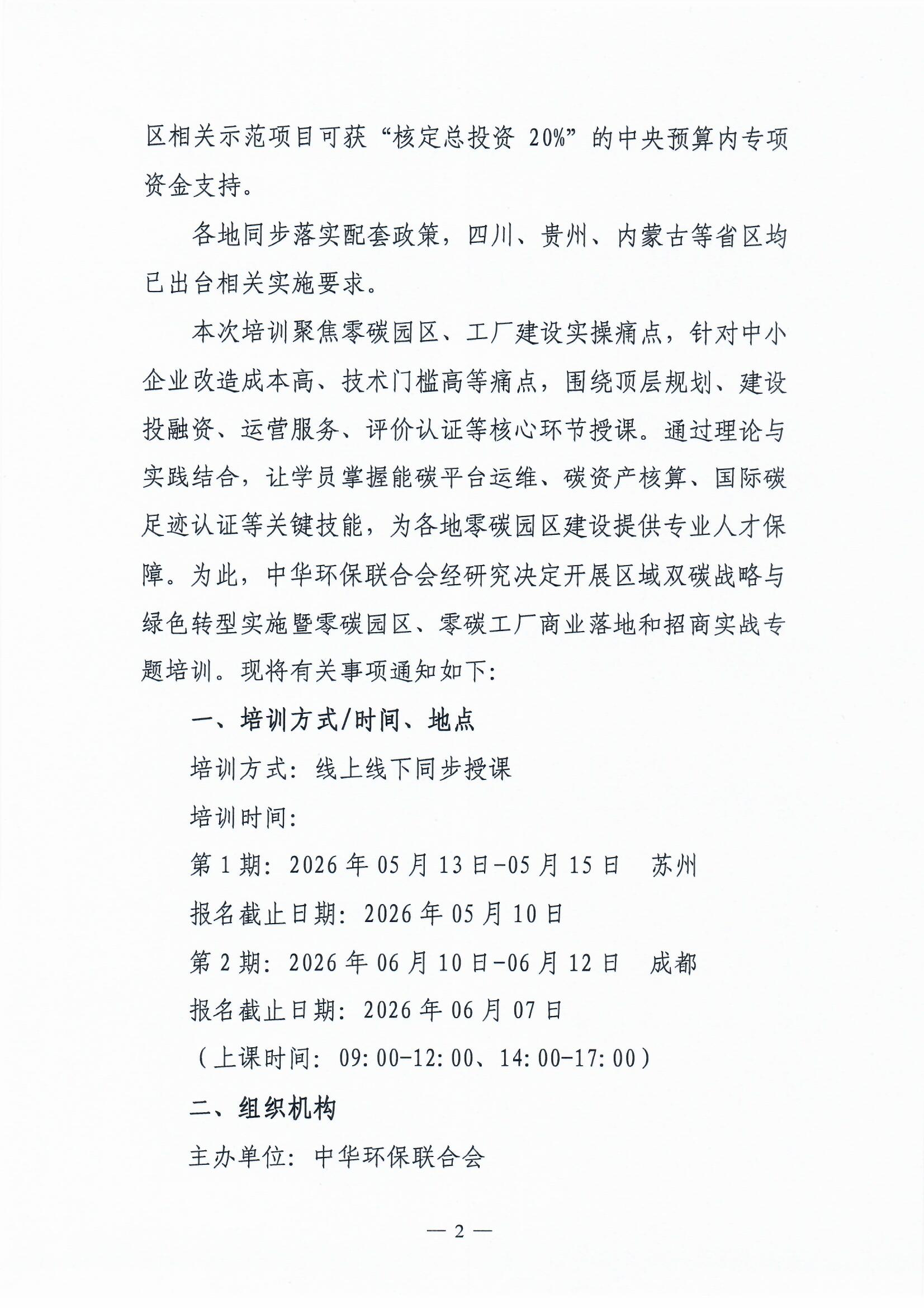 关于开展区域双碳战略与绿色转型实施暨零碳园区、零碳工厂商业落地和招商实战专题培训的通知