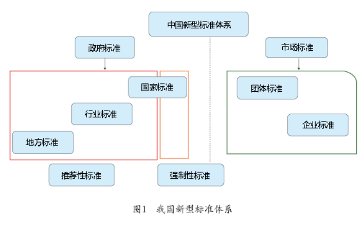 2018年1月1日起实施的《中华人民共和国标准化法》中规定,我国的标准体系由国家标准、行业标准、地方标准、团体标准和企业标准五种类型组成。其中,国家标准、行业标准、地方标准属于政府标准,团体标准和企业标准属于市场标准。政府标准侧重公益性和基础性,市场标准侧重竞争性和创新性,二者互为补充。
