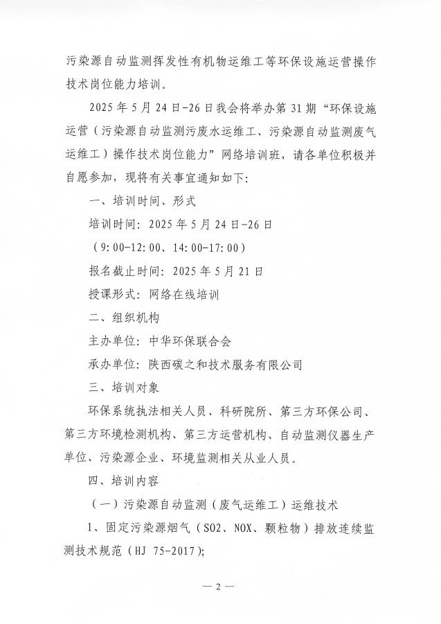 关于举办第31期“环保设施运营(污染源自动监测污废水运维工、污染源自动监测废气运维工)操作技术岗位能力”网络培训班的通知
