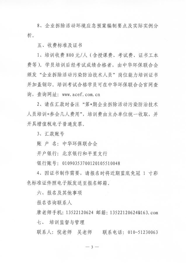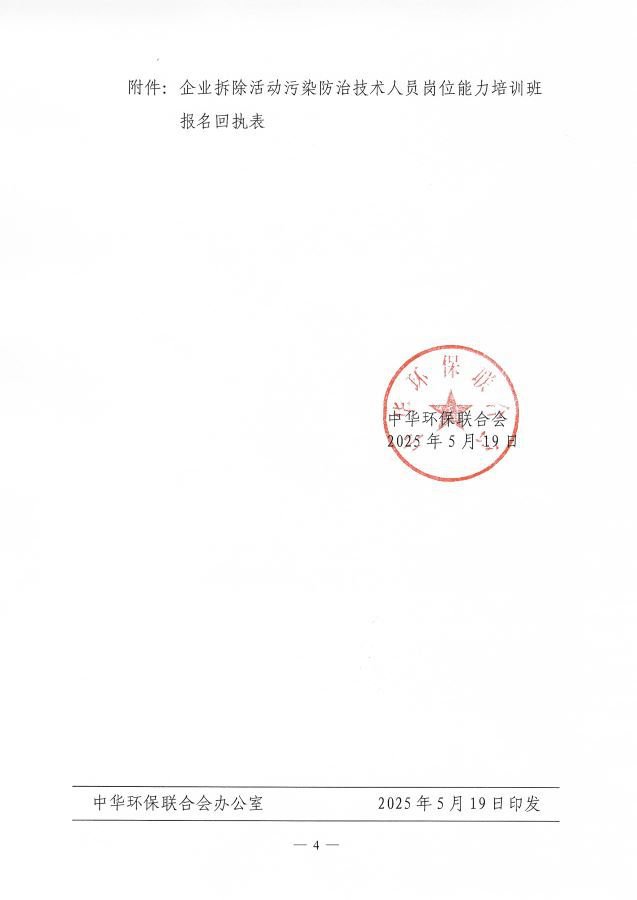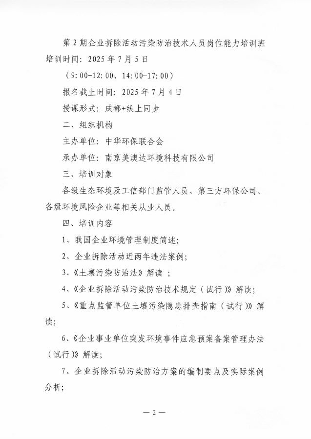 关于举办企业拆除活动污染防治技术人员岗位能力培训班的通知