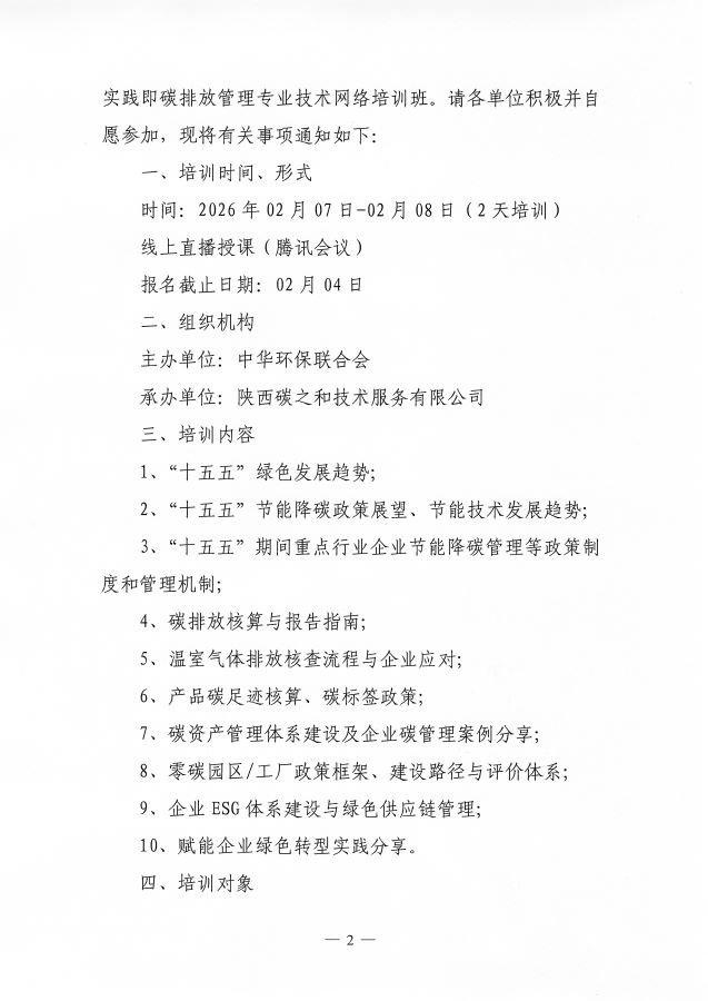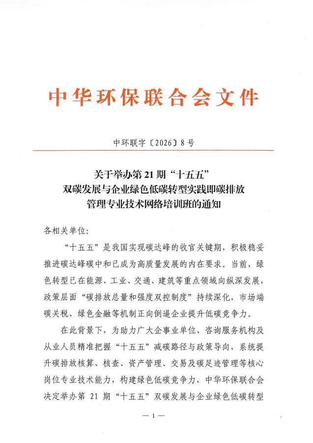 关于举办第21期“十五五”双碳发展与企业绿色低碳转型实践即碳排放管理专业技术网络培训班的通知