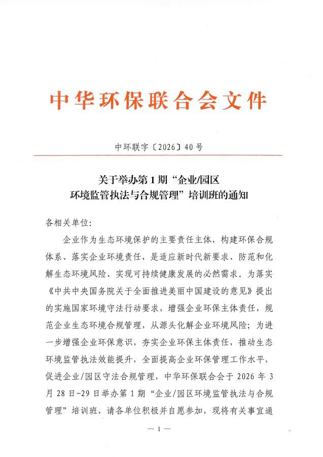 关于举办第1期“企业/园区环境监管执法与合规管理”培训班的通知