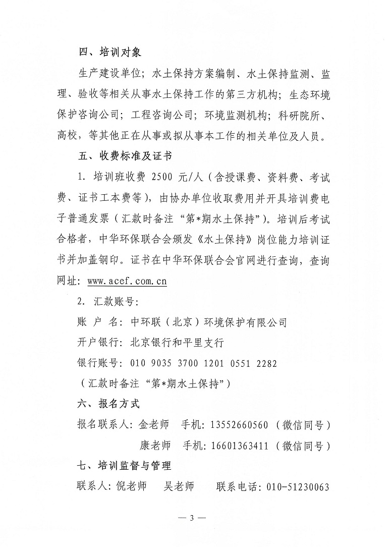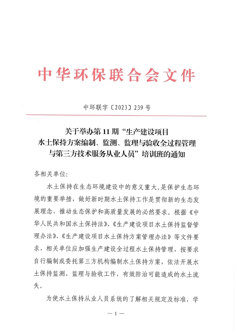 关于举办第11期“生产建设项目水土保持方案编制、监测、监理与验收全过程管理与第三方技术服务从业人员”培训班的通知