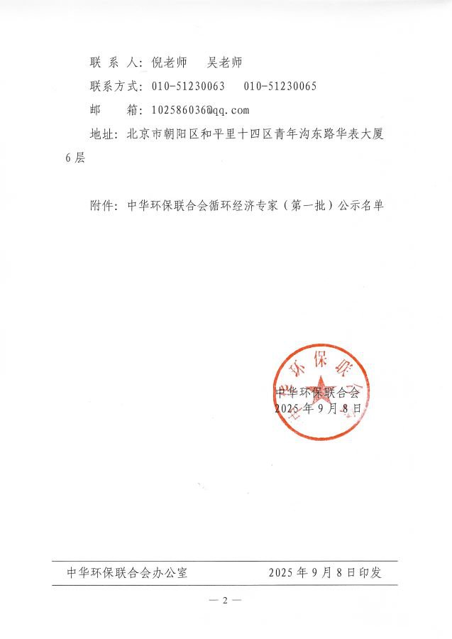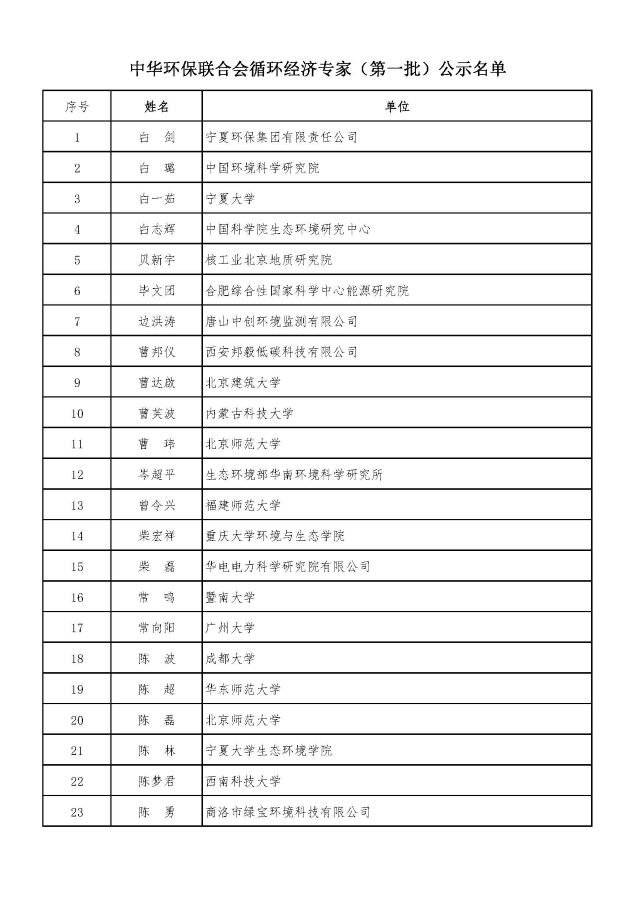 关于“中华环保联合会循环经济专家库”入选名单的公示(第一批)