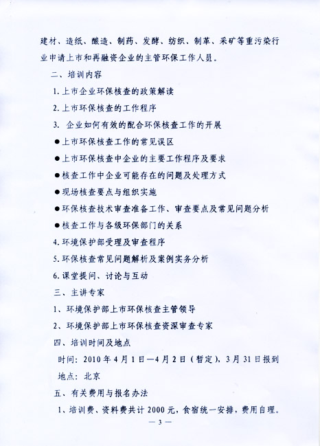 关于举办申请上市的企业和申请再融资的上市企业环保核查培训班的通知