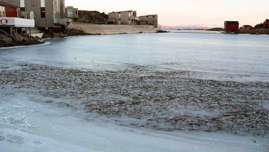 原标题:挪威寒冷鱼群被冻僵凝固冰层内持游弋姿态(图)