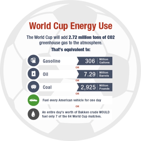 据英国《每日电讯报》报道,今年巴西世界杯在观众人数、投资规模以及利润回报上都史无前例,但同时这也将是足球比赛史上耗能最高、温室气体排放最多的一届世界杯。