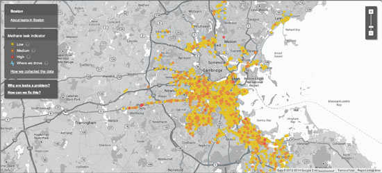 图2:美国环保协会与谷歌街景合作发布的波士顿天然气管道泄漏图像截图