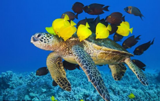 这组照片拍摄于美国夏威夷可纳海岸附近60英尺(18.28 米)深的太平洋海底。居住在可纳的Ushioda先生说,“这个‘海龟清洗站’就像是在提供洗车服务,海龟来到这里,被清洗干净,然后就出去。一有新的没被清洗的海龟来到‘清洗站’,所有的小鱼就放弃之前它们正在清洗的那只,转向新的这只。”来清洗的海龟越脏就越受欢迎。在一个小时的潜水过程中,前后约有十几只海龟享受“洗车”服务。清洗完毕,小鱼离开后,很多海龟选择在附近的暗礁上睡上20分钟,有的海龟则立刻离开。