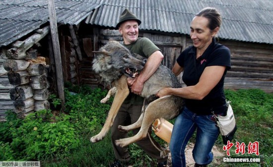 另类俄罗斯家庭将狼作为宠物 10岁女孩骑狼狂奔
