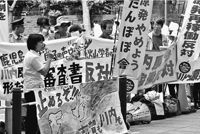 9月10日,日本民众在日本原子能规制委员会外集会,抗议重启两个核反应堆。 |