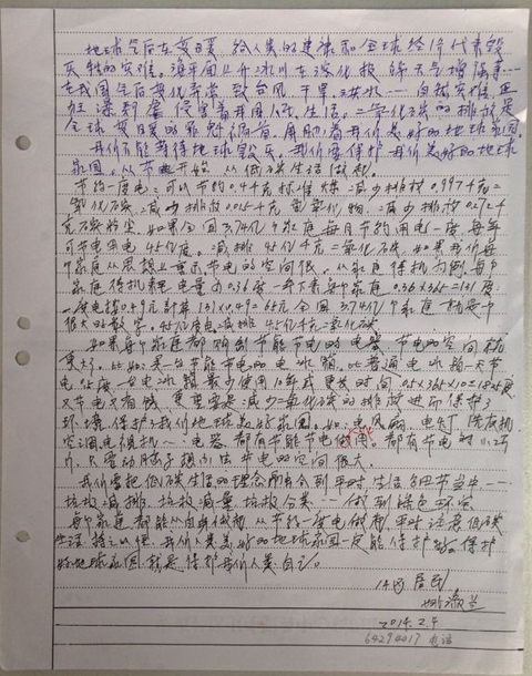 ![]() 我们不能等待地球毁灭,我们要保护我们美好的地球家园。从节电开始,从低碳生活做起。 节约一度电:可以节约0.4千克标准煤,减少排放0.997千克二氧化碳,减少排放0.015千克氮氧化物,减少排放0.272千克碳粉尘,如果全国3.74亿个家庭每月节约用电一度,每年可节约用电45亿度,减排45亿千克二氧化碳。如果我们每个家庭从思想上重视,节电的空间很大,以家庭待机为例,每个家庭待机来点电量为0.36度,一年下来每个家庭0.36*365=131度,一度电按0.49元计算,131*0.49=65元,全国3.74亿个家庭就是一个很大的数字,45亿度电减排45亿千克二氧化碳。 如果每个家庭都购置节能节电的电器,节电的空间就更大了。比如:买一台节能节电的电冰箱比普通电冰箱一天节电0.5度,一台电冰箱最少使用10年或更长时间。0.5*365*10=1825度,又节电又省钱,更重要的是减少二氧化碳的排放进而保护了环境,保护了我们地球美好家园。如:电风扇、电灯、洗衣机、空调、电视机……电器都有节能节电作用,都有节电的小巧劲,只要动脑子想办法节电的空间很大。 我们要把低碳生活的理念融合到平时生活细节当中,垃圾减排,垃圾减量,垃圾分类,做到绿色环保。每个家庭都能从自身做起,从节约一度电做起,平时注意低碳生活,持之以恒,我们人类美好的地球家园一定能保护好。保护好地球家园就是保护我们人类自己。 |
