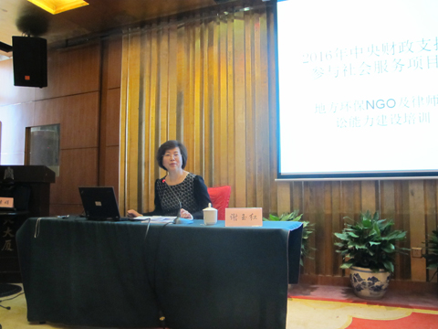 4月21日,“地方环保NGO及律师环境公益诉讼能力建议”一期培训班在北京湖北大厦正式开班,标志着2016年中央财政支持社会组织示范项目——中华环保联合会环境法律救助项目正式启动。来自甘肃、四川、安徽、山东等省份的21家环保NGO组织和29名地方律师参加培训。中华环保联合会副秘书长、环境法律救助项目负责人谢玉红女士出席并致辞。